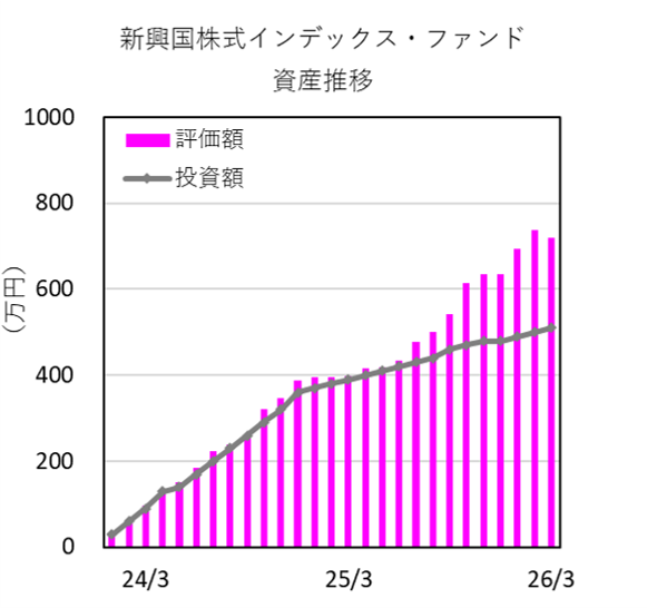 「新興国株式インデックス・ファンド」は、新NISAの成長枠の一部、および、つみたて枠で投資継続しています。
