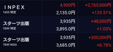 アメリカが中東イランを軍事攻撃したことにより、石油、天然ガス価格は急騰しています。INPEXの重要性も今まで以上に増しています。投資額に対して既に2倍以上の評価額となっていますが、保有・売却判断は今後の世界情勢を見ながら検討していく予定です。